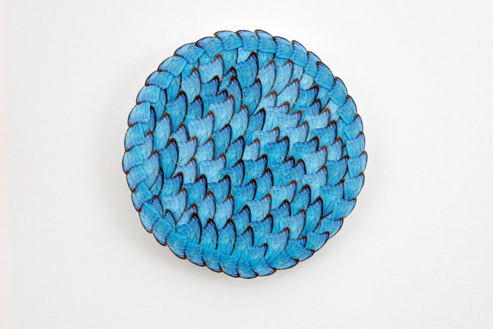 Silk, heat-formed and applied to canvas (Lepidography technique)